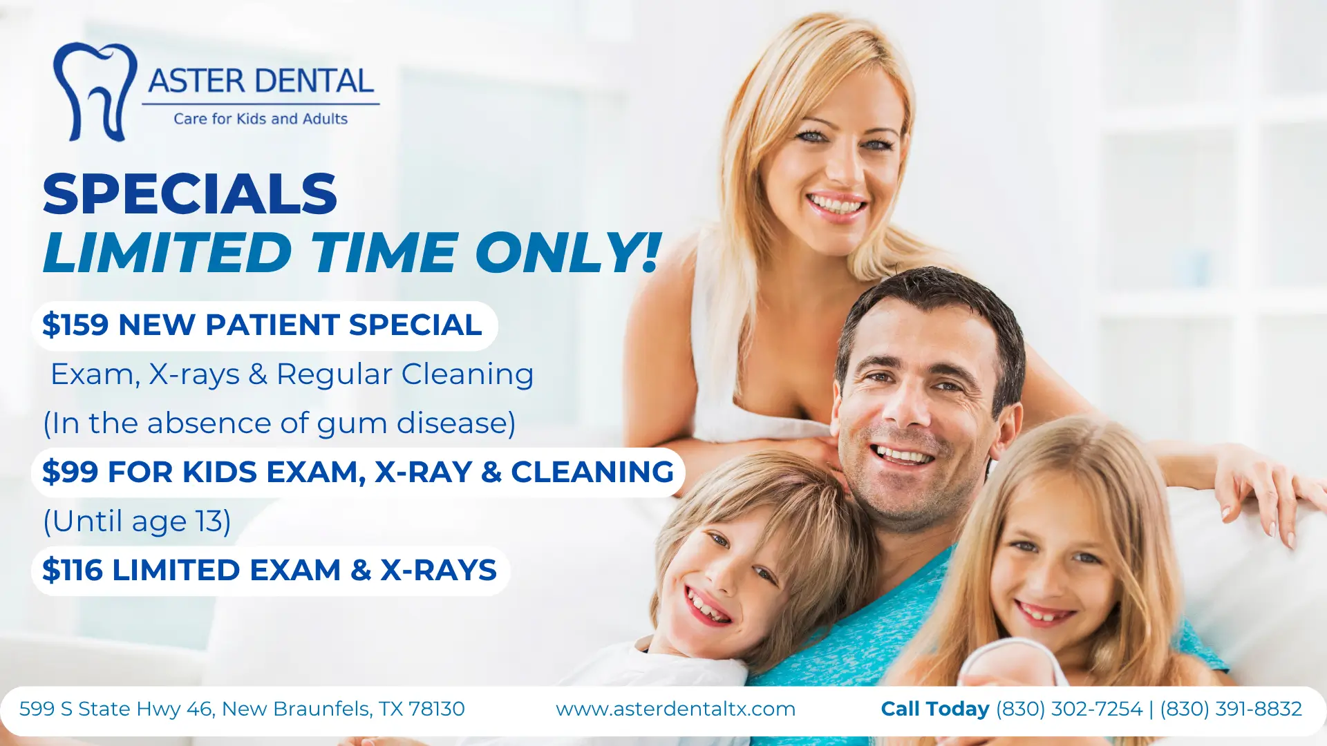 Again, our entire staff at Aster Dental wants to thank you for being a loyal patient. We are grateful that you continue to come to us for all of your dental needs. For this reason, we are proud to offer these specials to help you get the smile you deserve.